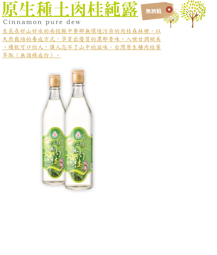 ◎來自好山好水的南投縣中寮鄉◎台灣正宗肉桂茶、天然、純素◎生長在無環境污染的肉桂森林◎天然養成、健康、安全、優質◎茶湯入喉甘潤甜美,香味濃郁
